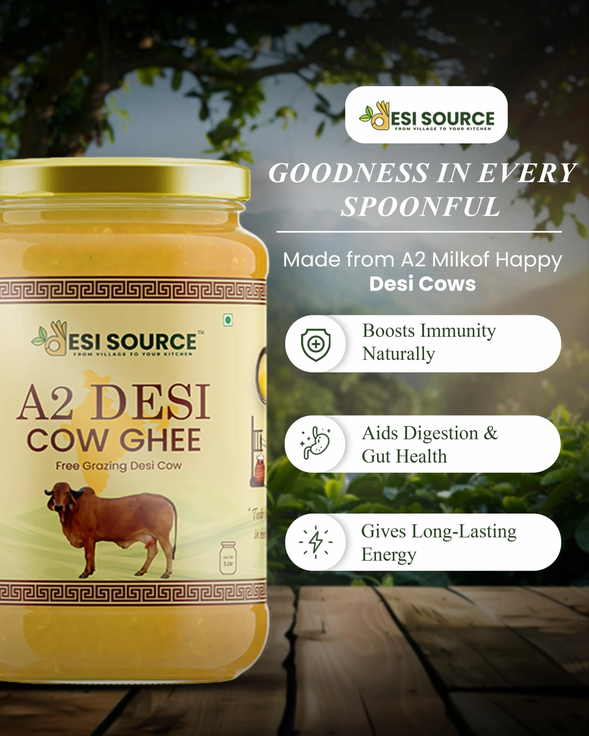 Crafted from the milk of A2 cow breeds using the time-honored Bilona method, this ghee is rich in nutrients and free from additives. It contains only A2 beta-casein protein, making it a healthier and more digestible choice for your family.